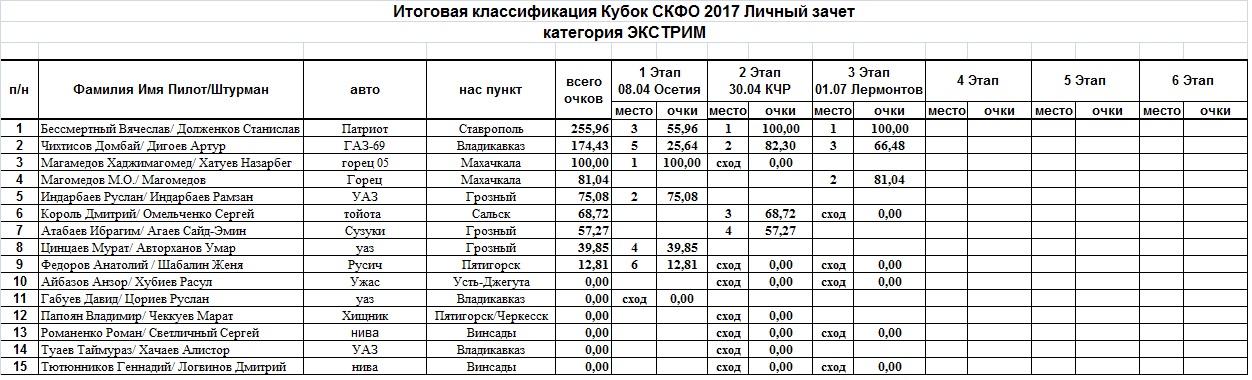 Re: Итоговая классификация Кубка СКФО 2016