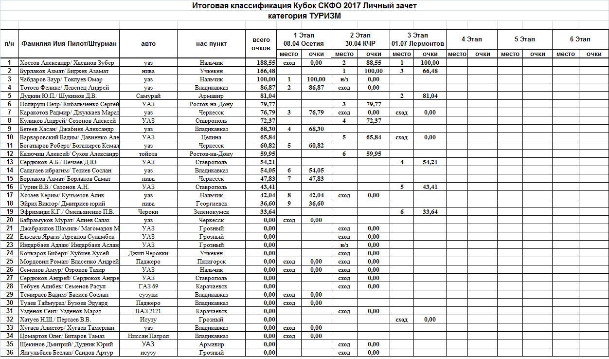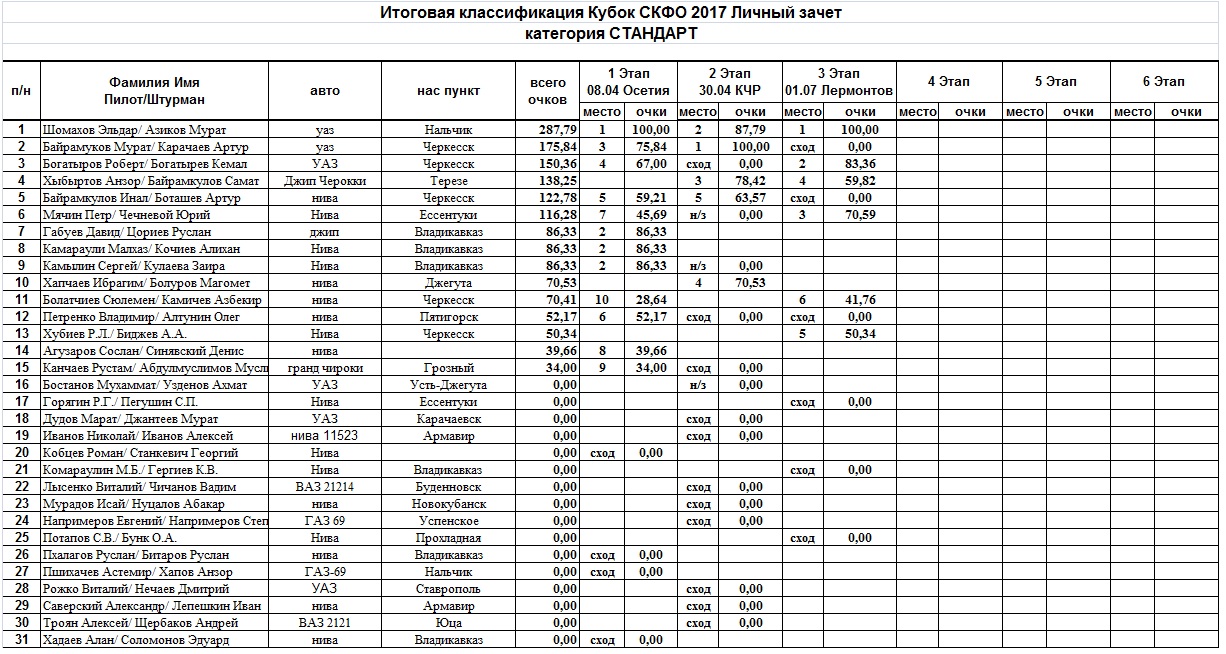 Итоговая классификация Кубка СКФО 2016